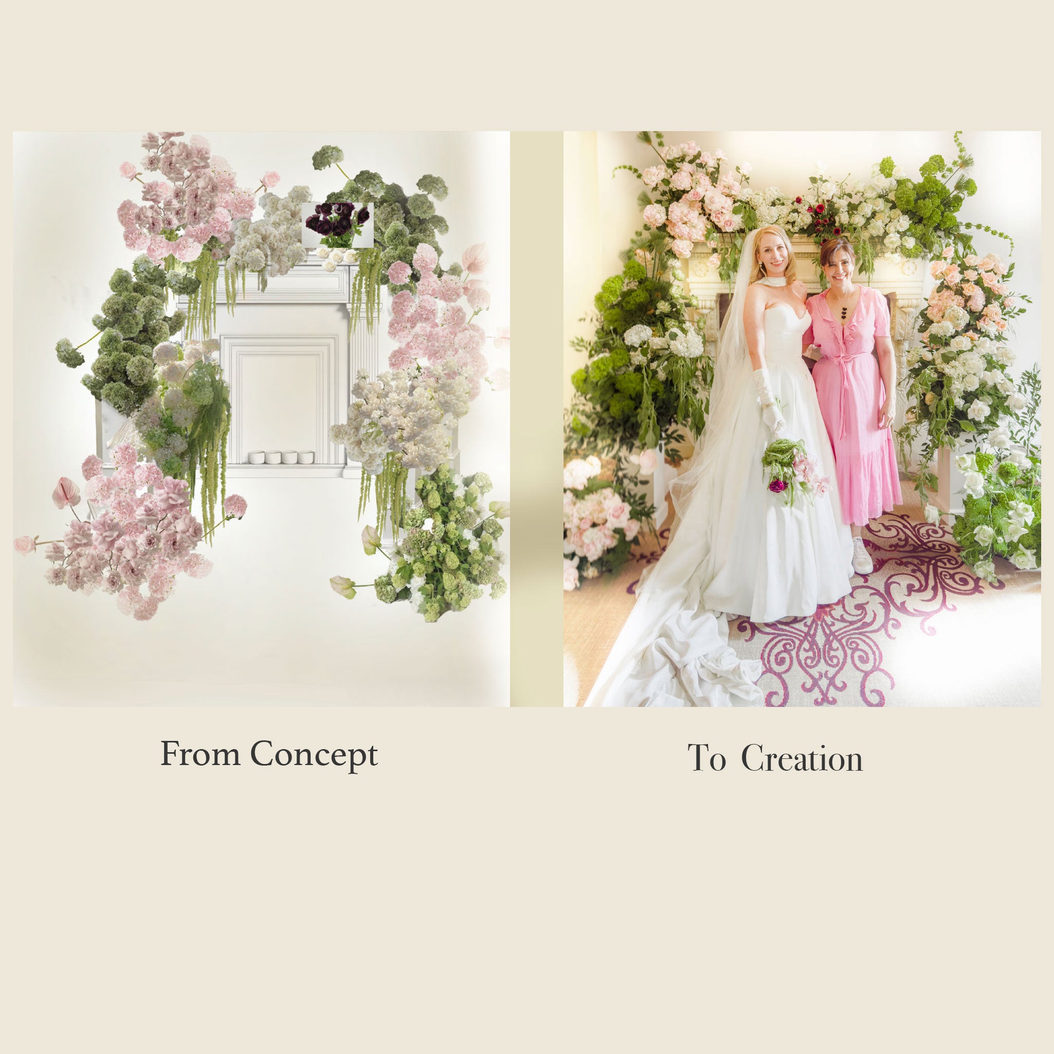 We design each floral concept based on the couple’s vision, theme, space, and budget—making sure everything feels intentional, personal, and true to their story. We create a custom Photoshop concept to help the couple visualize their flowers.Â