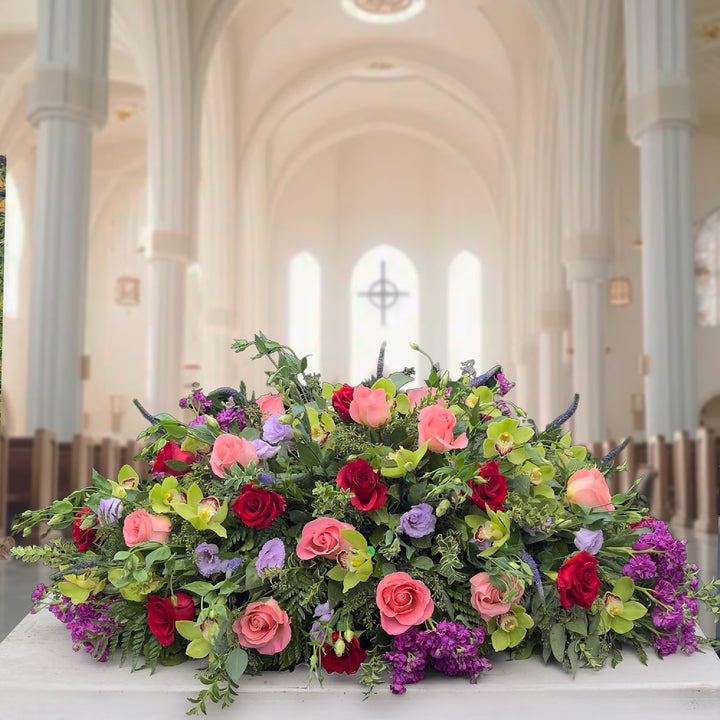 - Double-Sided Casket Spray: A double-sided casket spray provides a full floral display on both the front and back of the casket, ensuring a gorgeous presentation from all angles. It is ideal for services where the casket will be viewed from multiple sides.