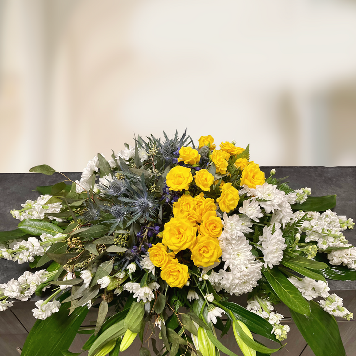 Yellow, White & Blue Casket Spray